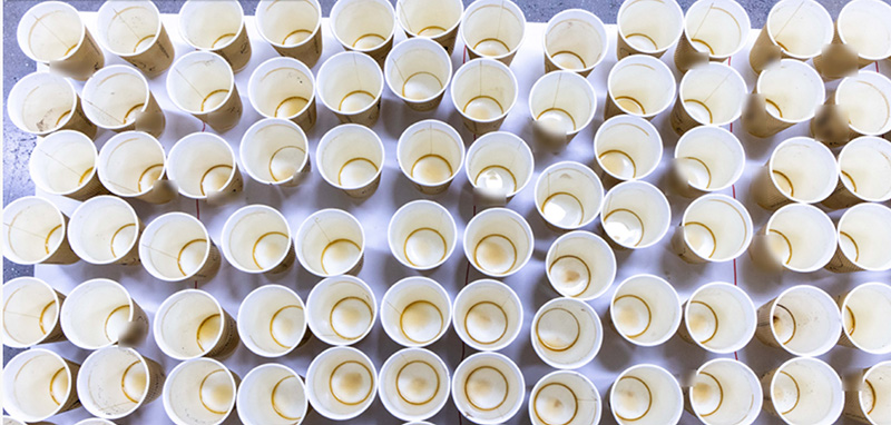 Prueba de rigidez: en comparación con los métodos tradicionales, tanto las tazas de papel vacías como las llenas de líquido tienen mayor rigidez.